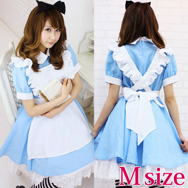 仕様:Mサイズ:B80〜88cm・W66〜76cm 丈:ワンピース86cm(袖丈23cm、肩幅33cm、腕周り28cm、首周り36cm) セット内容:ワンピース(背中ファスナー、ウェスト一部ゴム使用)・エプロン(ボタンにより3段階の長さ調節可)・リボンカチューシャ(黒色リボン)