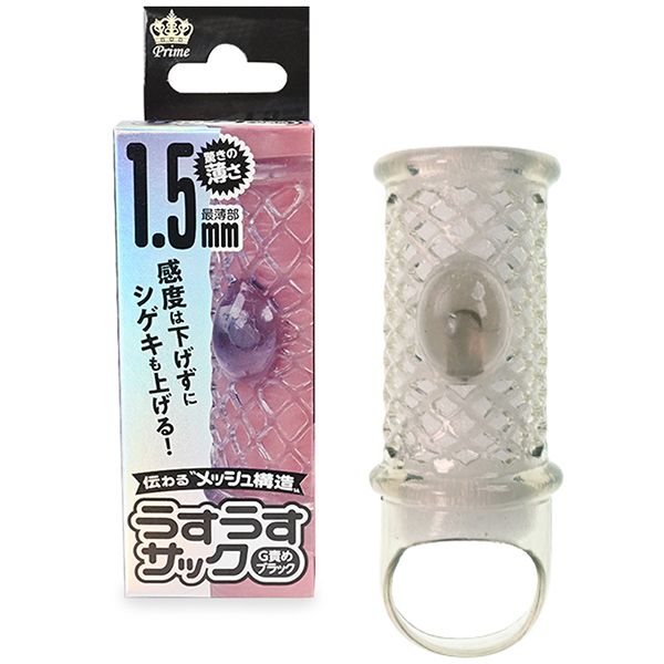 驚きの薄さ1.5mmで感度を損なわずにより刺激的に楽しめる特殊サックです♪メッシュ構造により温かさもしっかり伝わります!ストレスフリーな付け心地とパートナーへの安全性にも配慮した素材を採用♪カリ部と根本部分をしっかり締めながら、温もりと刺激を犠牲にしないデザインです♪大きめのG突起がピストンする度に絶妙な刺激を与え、Gスポットを的確に責めます!感度を下げずに刺激をアゲる♪サオの露出度を高めるメッシュ加工を設けることで、挿入時に感じる刺激を遮らず、太いままをキープします!伸縮性の高いエラストマー素材をベースに、約1.5mmの薄さに成型しつつメッシュ状に表面を加工することで程よい摩擦刺激を体感できます♪背面に大きめなイボ突起を配置し、パートナーへの刺激も強化!亀頭が露出していることで直下を締めつけ、サオの根本もホールドします♪キュッと締めつけることで勃起力を上げる効果もプラス!パートナーの体温を感じながら快適なプレイを楽しむことができます♪