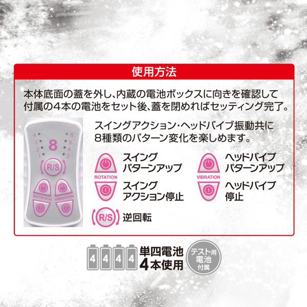 仕様:パッケージ:23.2×7.5×4.0cm 本体:21.7×3.4cm 重量:134g 電池:単四電池×4本使用