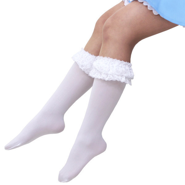 【430円★数量限定】リボン付きレースハイソックス 白<お一人様1点限り>