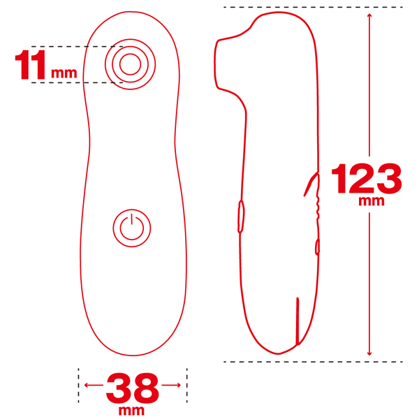 仕様:パッケージ:16.5×9.0×5.0cm 本体:12.3×3.8cm・吸引部内径1.1cm 重量:54g 電池:単四電池×2本使用