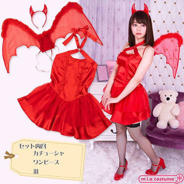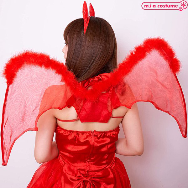 仕様:対応サイズ:身長155〜165cm・B〜90cm・W〜70cm・H〜96cm 実寸:B74〜90cm・W66〜74cm・着丈53cm(背中心) セット内容:カチューシャ、ワンピース(背中心ファスナー)、羽 素材:ポリエステル100%