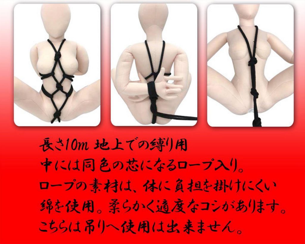 初心者でも簡単♪ソフトSMにぴったりな綿素材を使用した緊縛ロープ「簡単拘束ロープ 赤」。●身体に負担をかけない綿素材●柔らかく適度にコシのある仕上がり●様々なプレイを実現する長さ10m●使用後は洗濯も出来て衛生的●緊縛師「青山夏樹」推薦。緊縛プレイでマンネリ解消!緊縛事故防止の教育・啓発を行うNPO法人BDSMセーフティーサポート協会代表の女緊縛師「青山夏樹」推薦!安心・安全に使用できるSMグッズです。※本商品は吊りへの使用は出来ません。